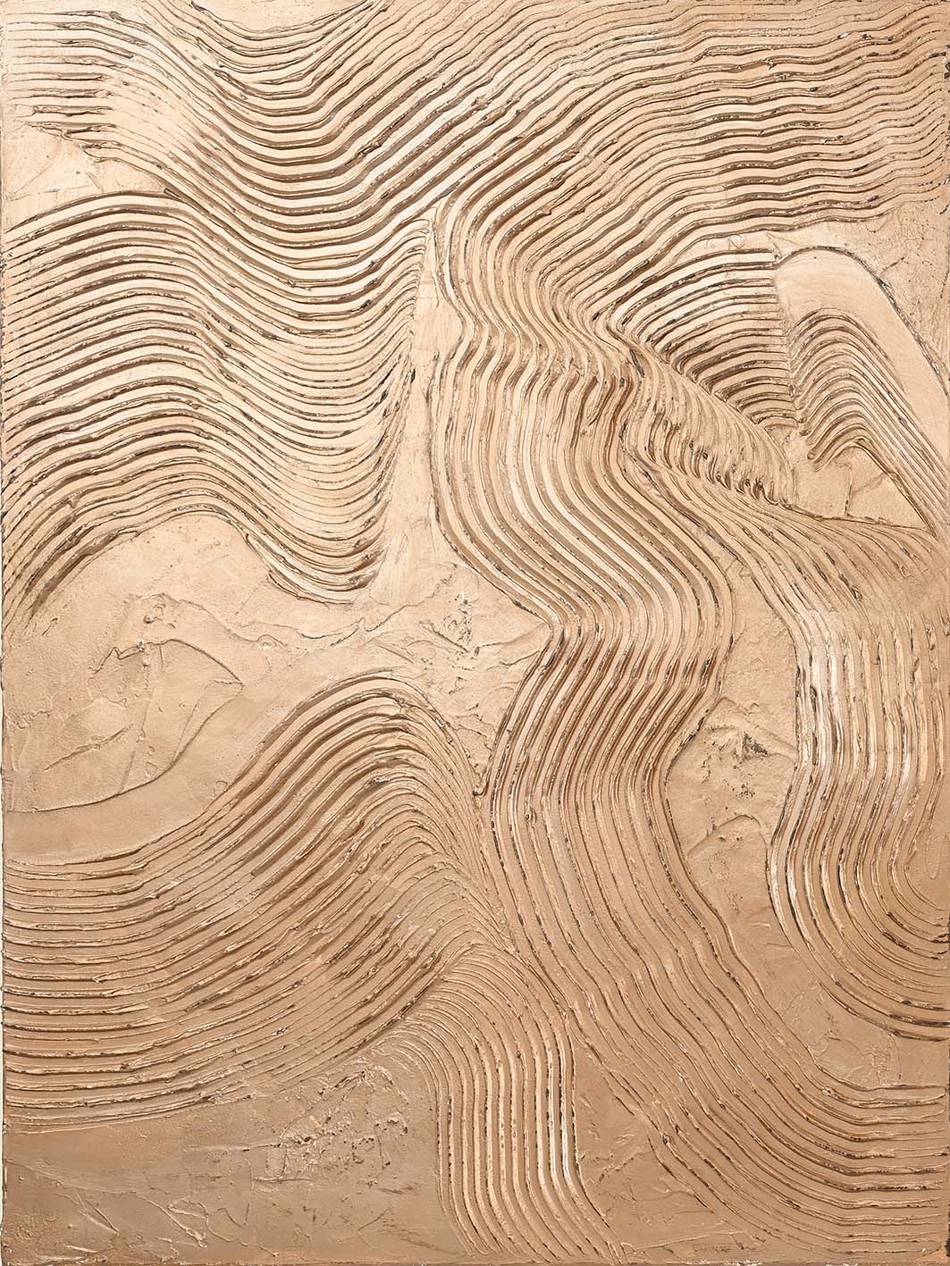 Metallic Brown is a modern artwork painted with metallic-colored paint, providing a sophisticated sheen. The organic lines and structures create a warm and dynamic atmosphere with a luxurious expression.