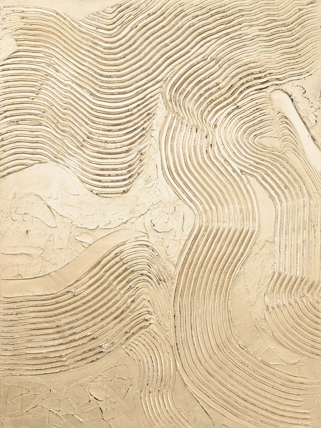 "Metallic Champagne" is an abstract piece with textured lines and a champagne-colored metallic surface that adds plenty of shine and elegance to any room.