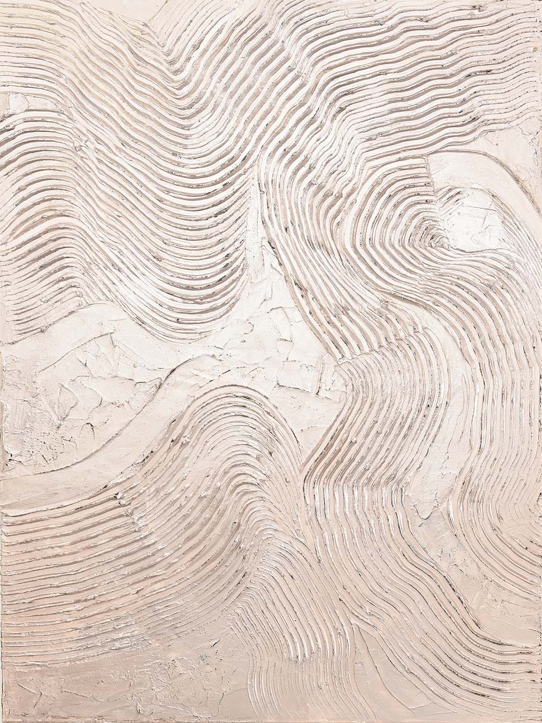 Metallic Rose is a modern artwork created with metallic-colored paint, adding an elegant shine and highlighting the flowing textures. The painting's structures create a dynamic and sophisticated expression.