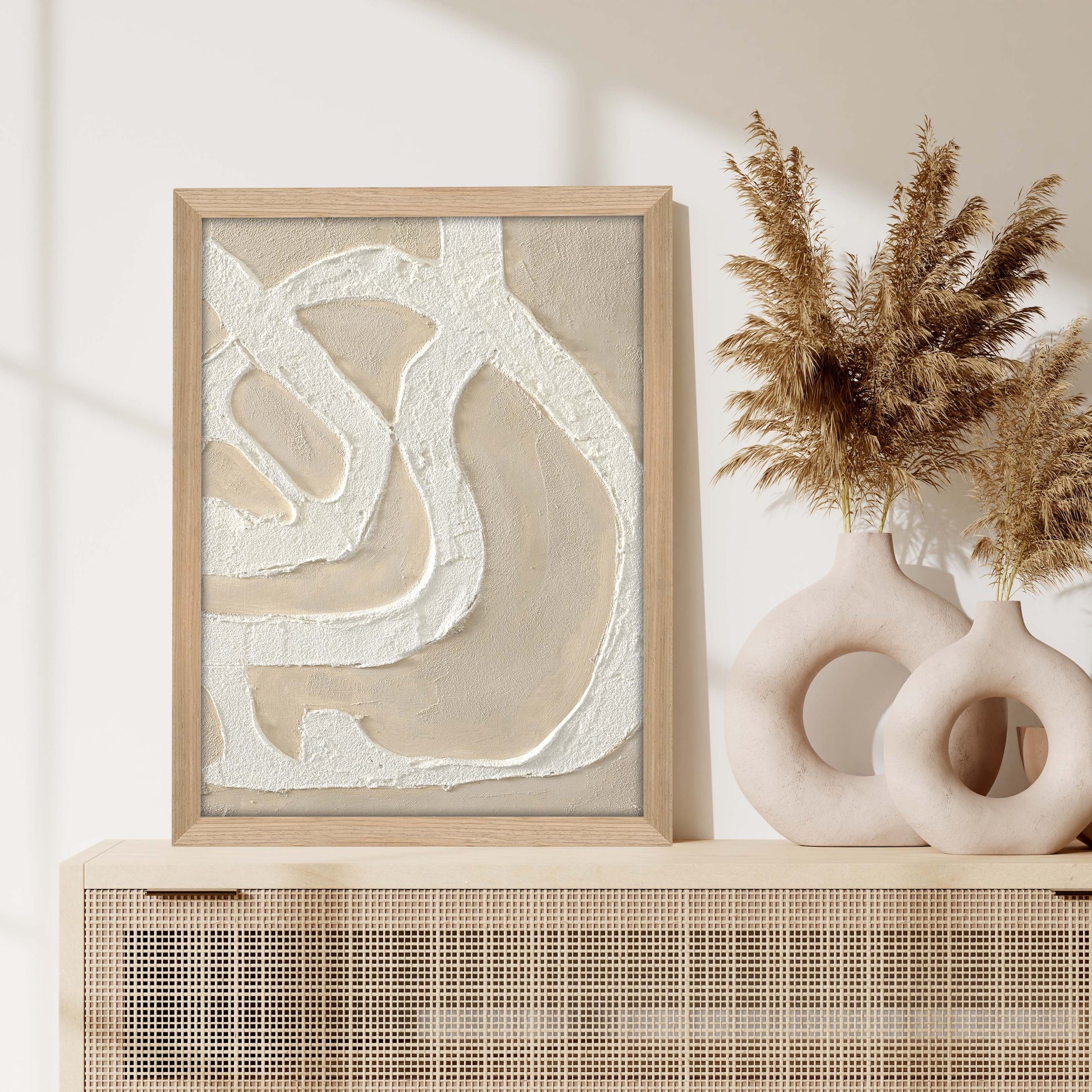 The Nordic Art Collection is a series of hand-selected works by Freja, where Nordic simplicity meets raw, textured elegance. Every brushstroke is intentional, building richly layered surfaces that bring depth, life, and sculptural character to the art.