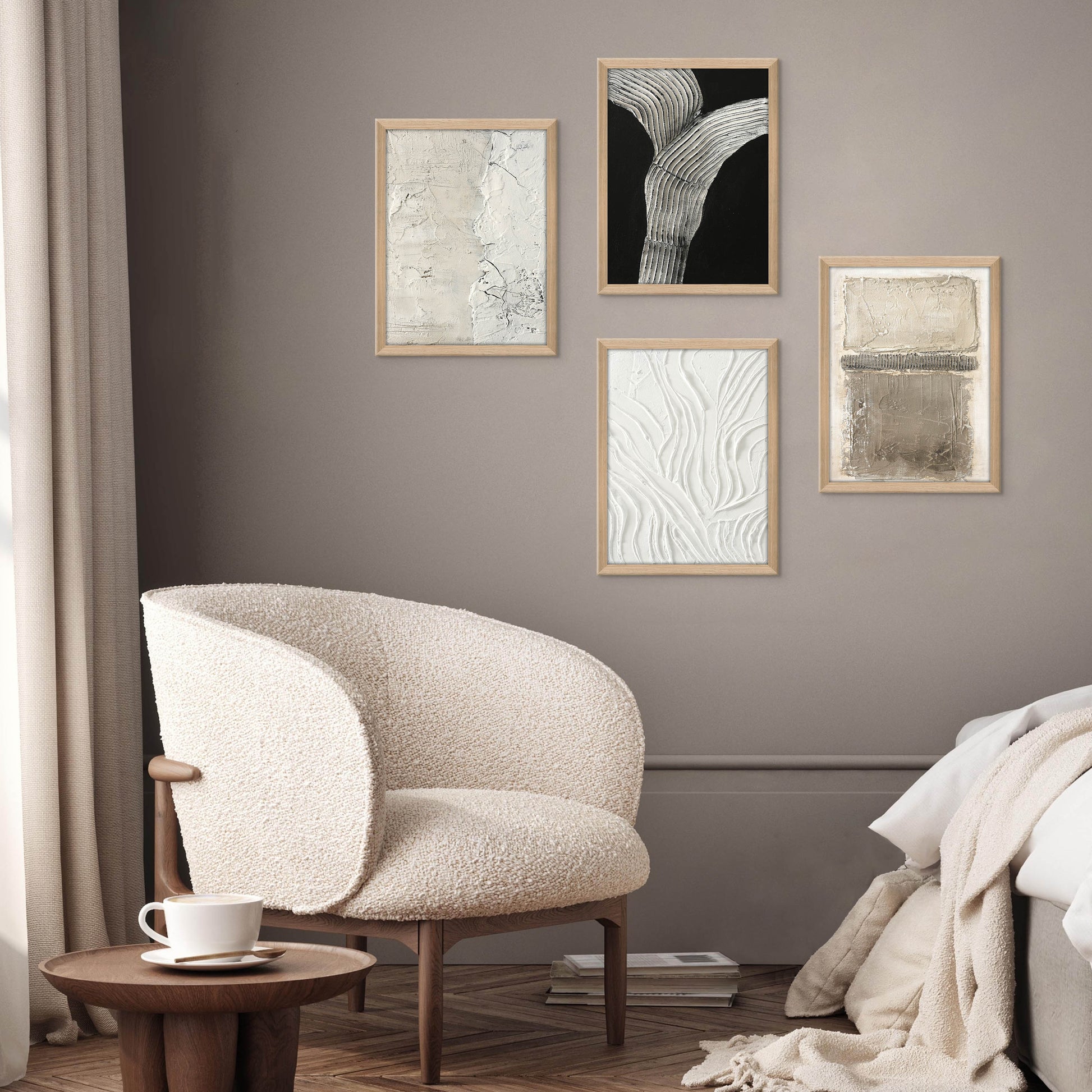 The Nordic Art Collection is a series of hand-selected works by Freja, where Nordic simplicity meets raw, textured elegance. Every brushstroke is intentional, building richly layered surfaces that bring depth, life, and sculptural character to the art.
