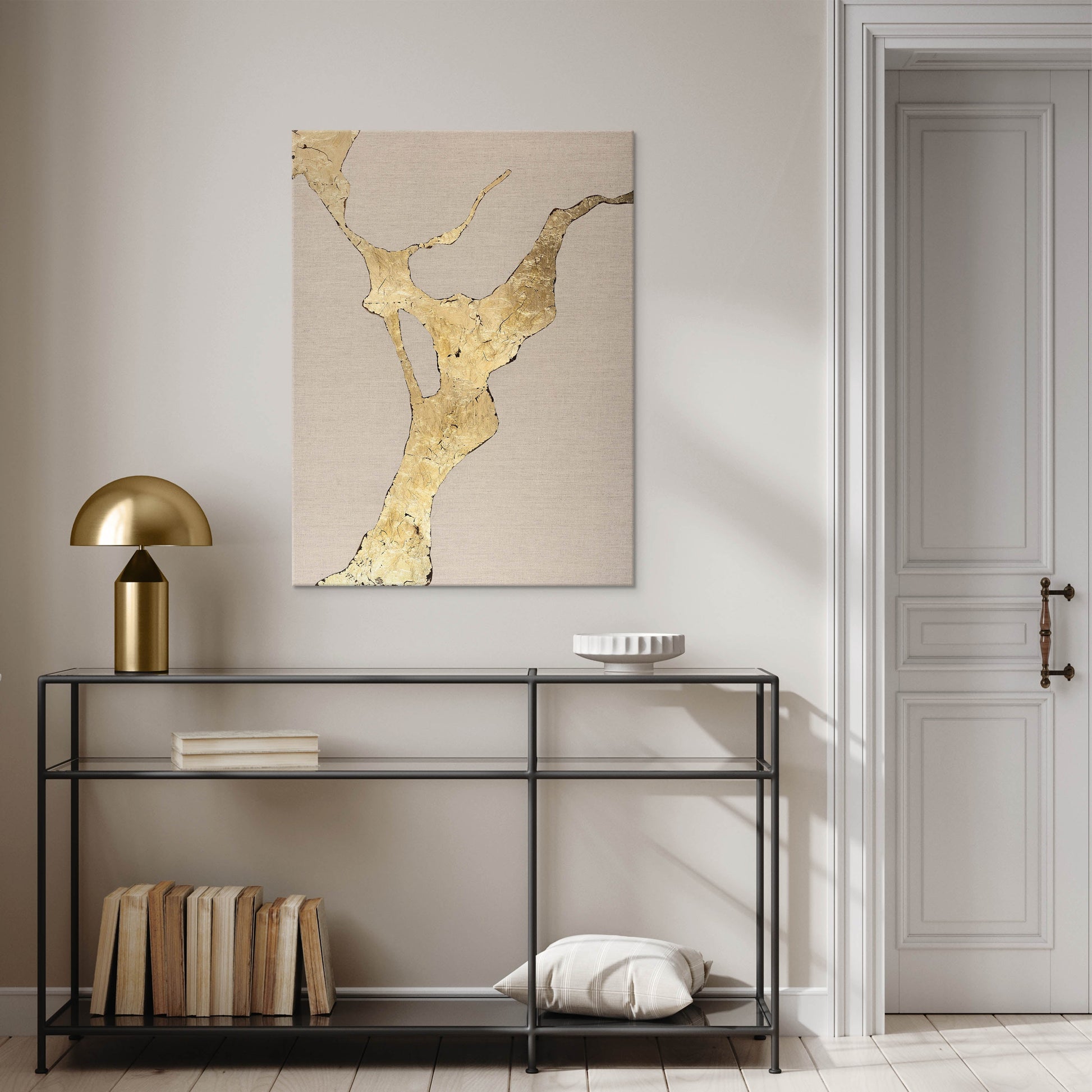 Wild Horizon Gold is a unique artwork created on linen canvas and made with gold leaf. The minimalist design and golden details create an elegant contrast and an exclusive expression, adding a touch of luxury to any space.